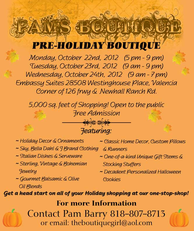Pams-Boutique Pre-Holiday 2012 Santa Clarita Mag Ad Published October 18, 2012 at 666 × 792 in Pams-Boutique Pre-Holiday 2012 Santa Clarita Mag Ad Pam’s-Pre-Holiday-Boutique